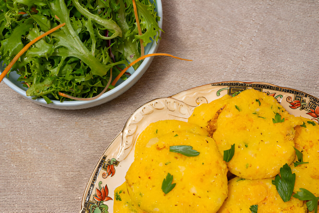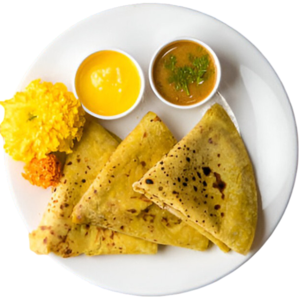 - Thick pancake topped with assorted vegetables, served with chutney.